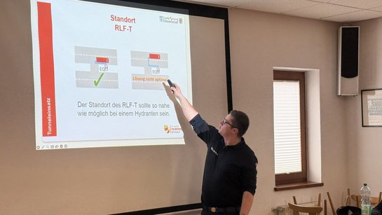 Der erste Ausbildungstag am 29. März 2025 stand ganz im Zeichen der Theorie. Die Teilnehmer erhielten grundlegendes Wissen zum Vorgehen bei Bränden in Tunnelanlagen. Dabei wurden unter anderem folgende Themen der Tunneleinsatztaktik beleuchtet: