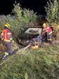 Ein Fahrzeug war mit stark überhöhter Geschwindigkeit von der Fahrbahn abgekommen und im dichten Gebüsch zwischen Bundesstraße und Eisenbahnstrecke zum Stillstand gekommen.