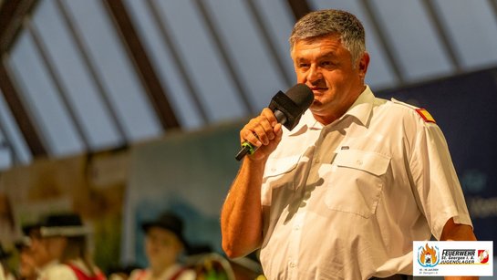 Feuerwehrpräsident Robert Mayer wünschte den Verantwortlichen und Jugendlichen ein gutes Gelingen des Jugendlagers, da es ja für viele Jugendliche das Highlight der Ferien ist.